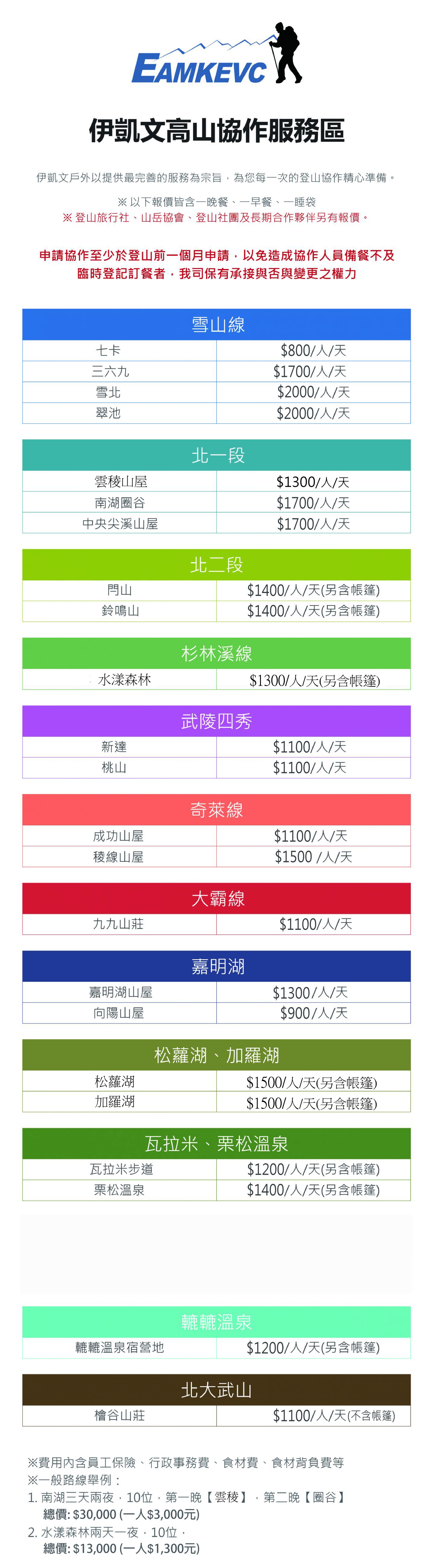 高山協作搭伙服務 如近期需求,還請事先確認價格是否調整。