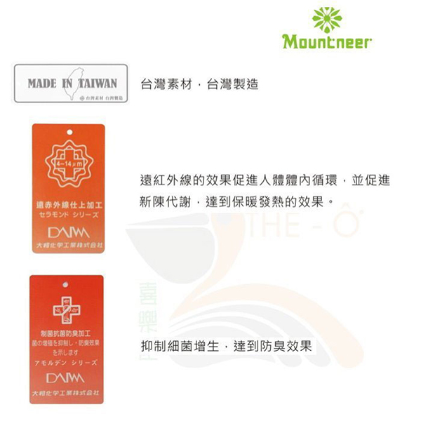 台灣製造,遠紅外線的效果促進人體體內的循環,並促進新陳代謝,達到保暖發熱的效果,抑制細菌增生,達到防臭效果,此款為雙向四面彈性。