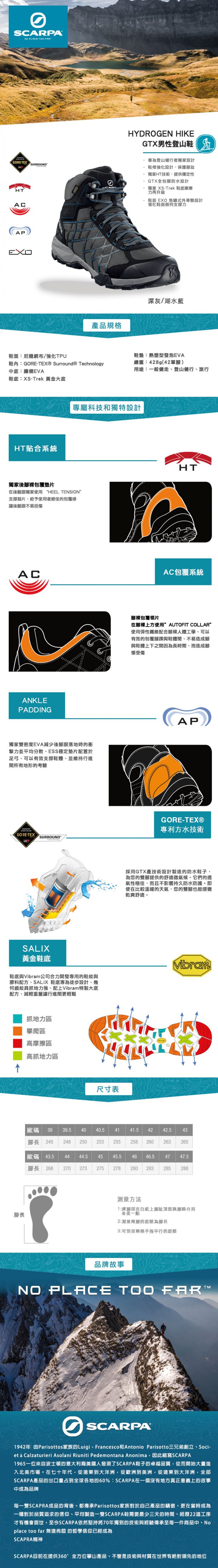 SCARPA HYDROGEN HIKE GTX 男款防水中筒登山鞋 深灰/湖水藍