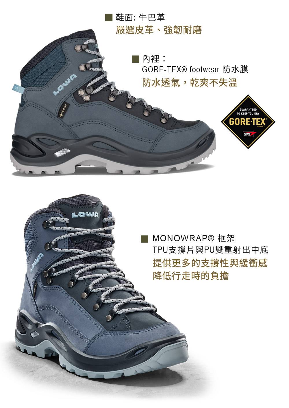 伊凱文戶外 LOWA 中筒多功能健行鞋 女 煙藍 RENEGADE GTX MID Ws LW320945-0619