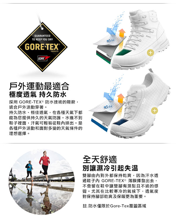 使用Matryx面料、GORE-TEX防水透氣薄膜、縫合泥擋和堅固的 TPU 鞋頭蓋,確保100%的保護。