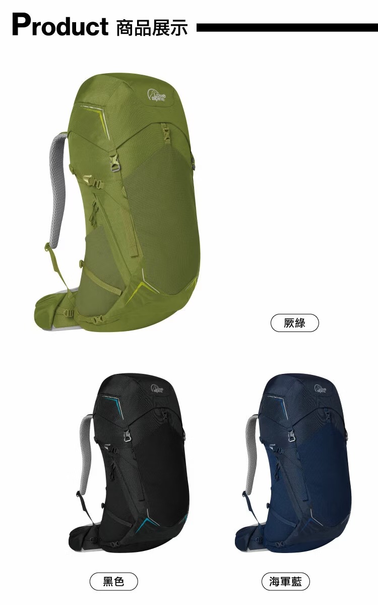 採用透氣舒適的AirZone+TM背負系統,並有FormKnitTM專利技術,多功能空間設計可應付多種路線,適合中長距離的登山健行。
