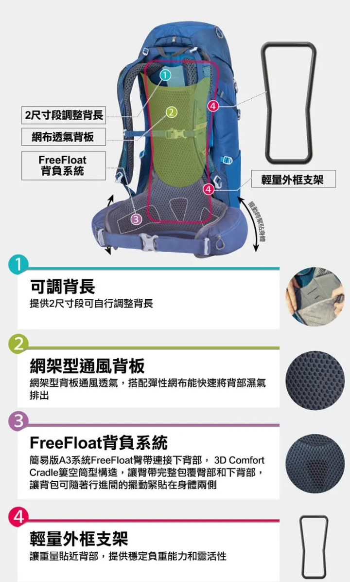 結合兩段可調式背長和網架背板,擁有優異的背部透氣度;