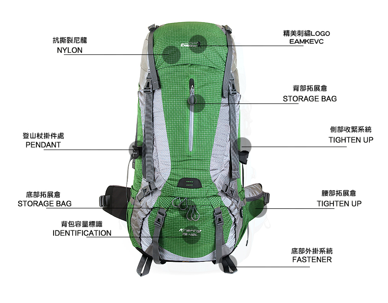 EAMKEVC 8818 大力神專業登山背包 70+15L 紅