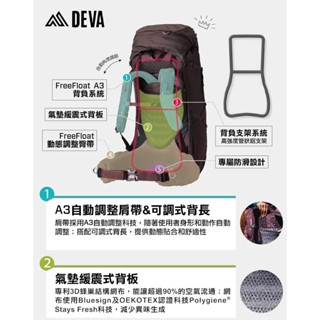 伊凱文戶外 GREGORY 60L DEVA 女款登山健行背包 A3背負系統提供動態舒適性 XS 茄子色
