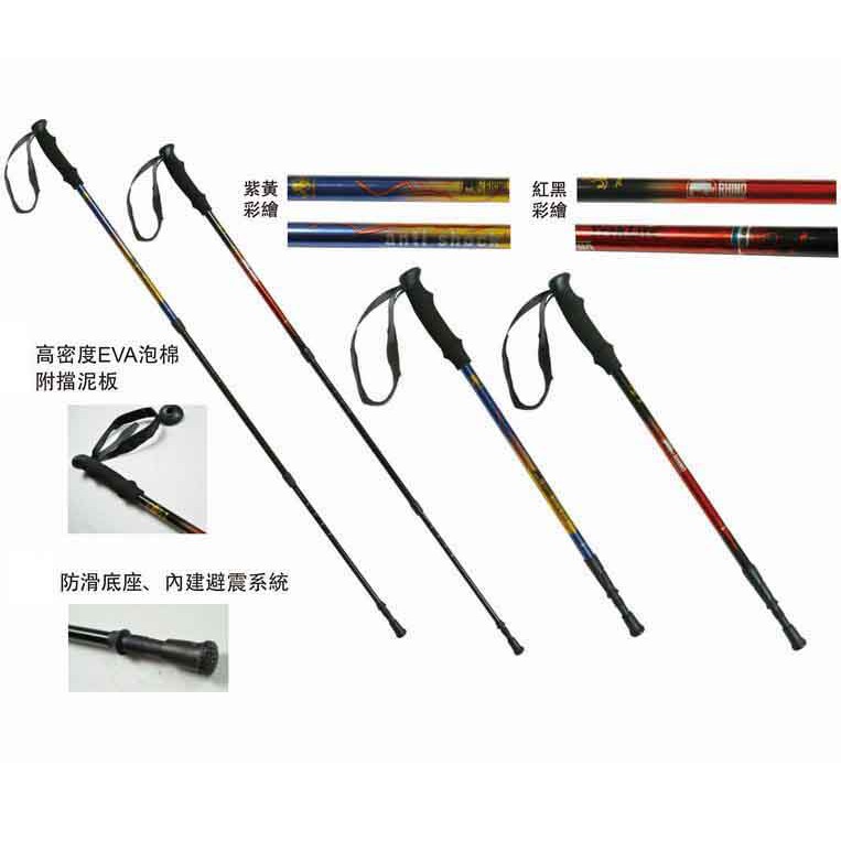 伊凱文戶外 犀牛 極輕量鋁合金彩繪登山杖 三節 旋轉式 避震 泡棉握把 RHINO 766