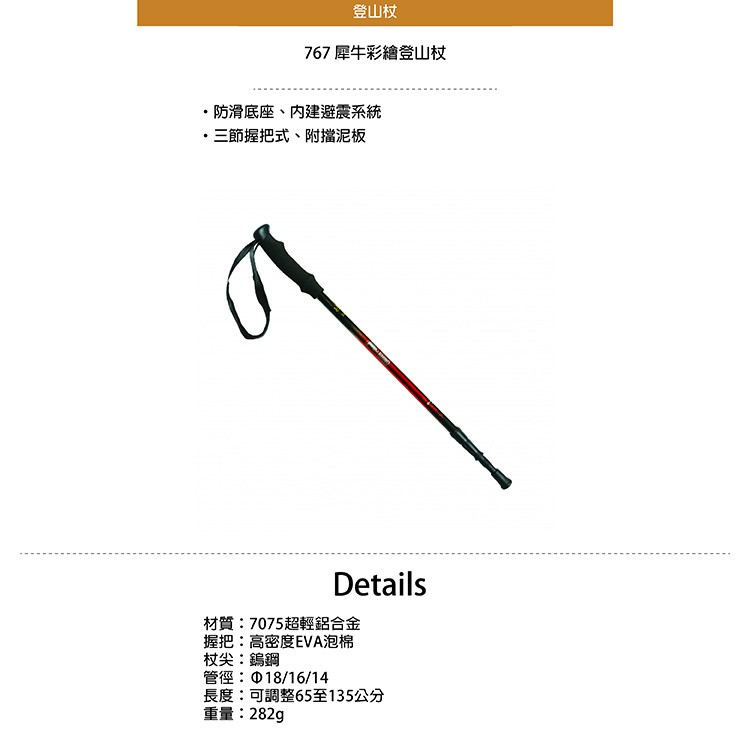 伊凱文戶外 犀牛 彩繪登山杖 RHINO 767