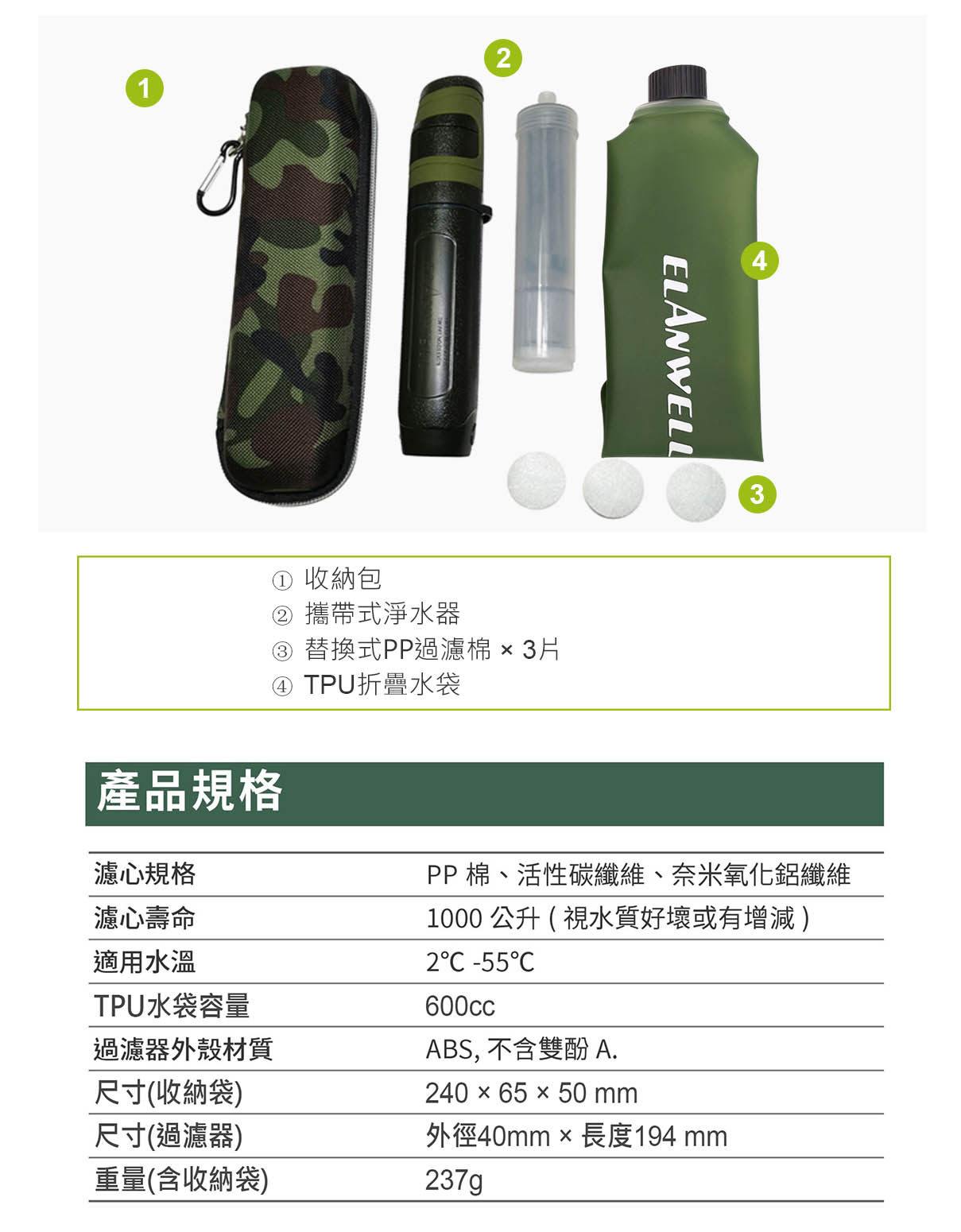 ELANWELL攜帶式吸管淨水器: