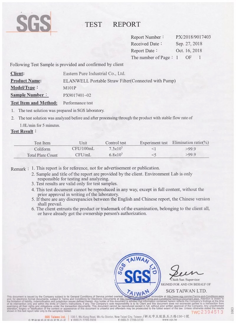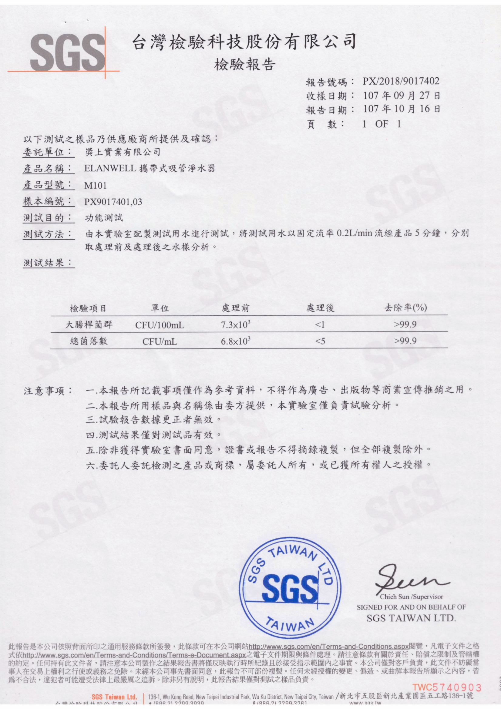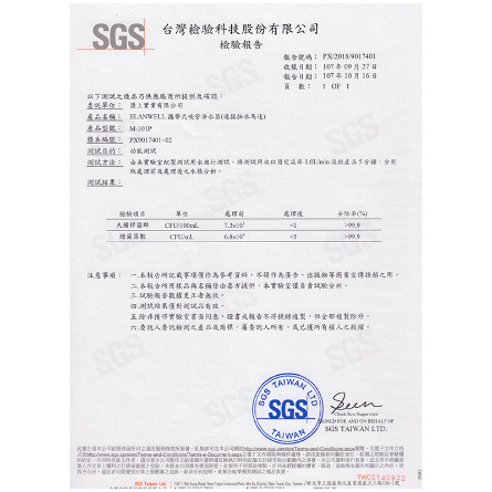 SGS測試報告(去除細菌)