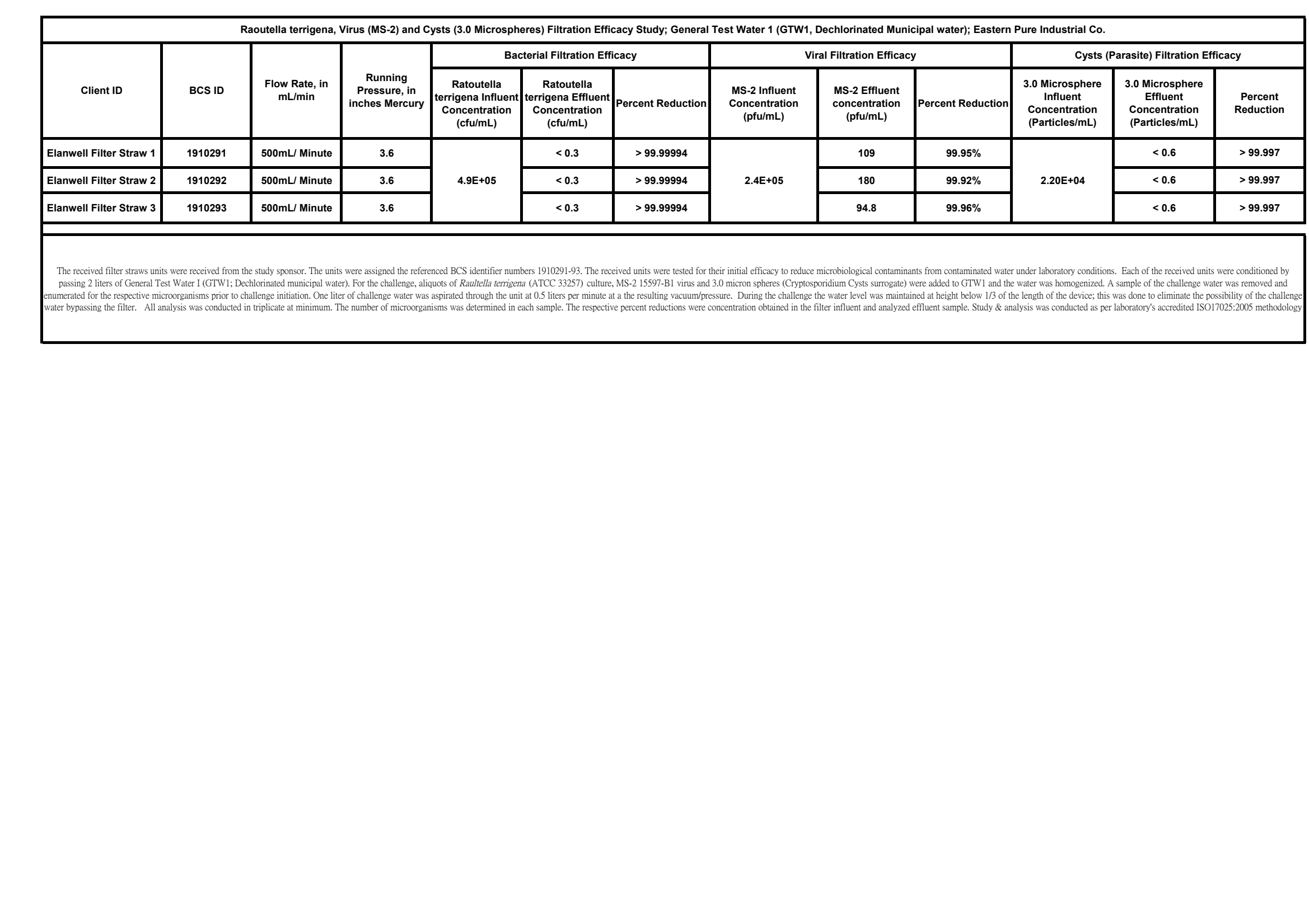 BCS測試報告(去除病毒,細菌,胞囊)