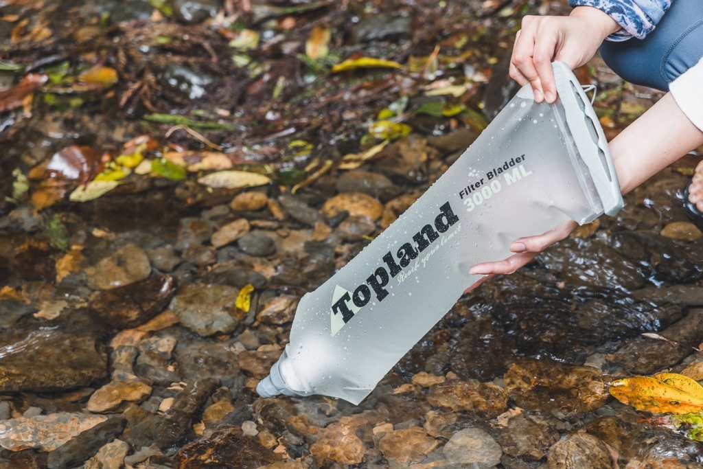 Topland Filter Bladder 是專門為台灣登山及露營環境設計的飲水過濾系統。輕量化與可摺疊的設計,方便使用者收納與攜帶。三階段不同層次的過濾,適用於溪流、湖泊、泉水,甚至是看天池等惡劣環境。優良的袋身開口設計,可用於各種水源環境。每分鐘兩公升以上的流速,節省飲水處理上的時間。Topland Filter Bladder提供台灣的使用者,在各種戶外活動中能輕鬆取得乾淨的飲水。
