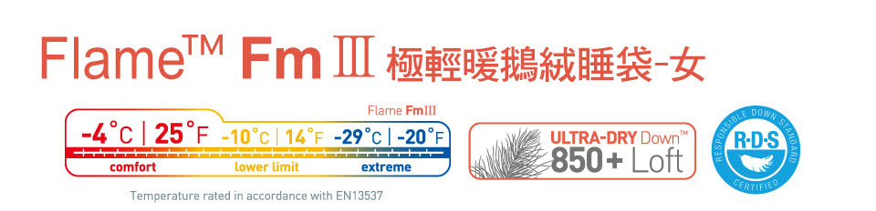 專為女性設計提高更多保暖度! 當你需要高性能睡袋但不想背帶太多重量,我們的FlameTM系列睡袋是妳最好的選擇