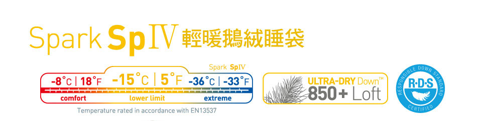 極輕及具技術性的SparkTM 系列睡袋,讓你在打包時,同時兼顧輕量化與保暖。