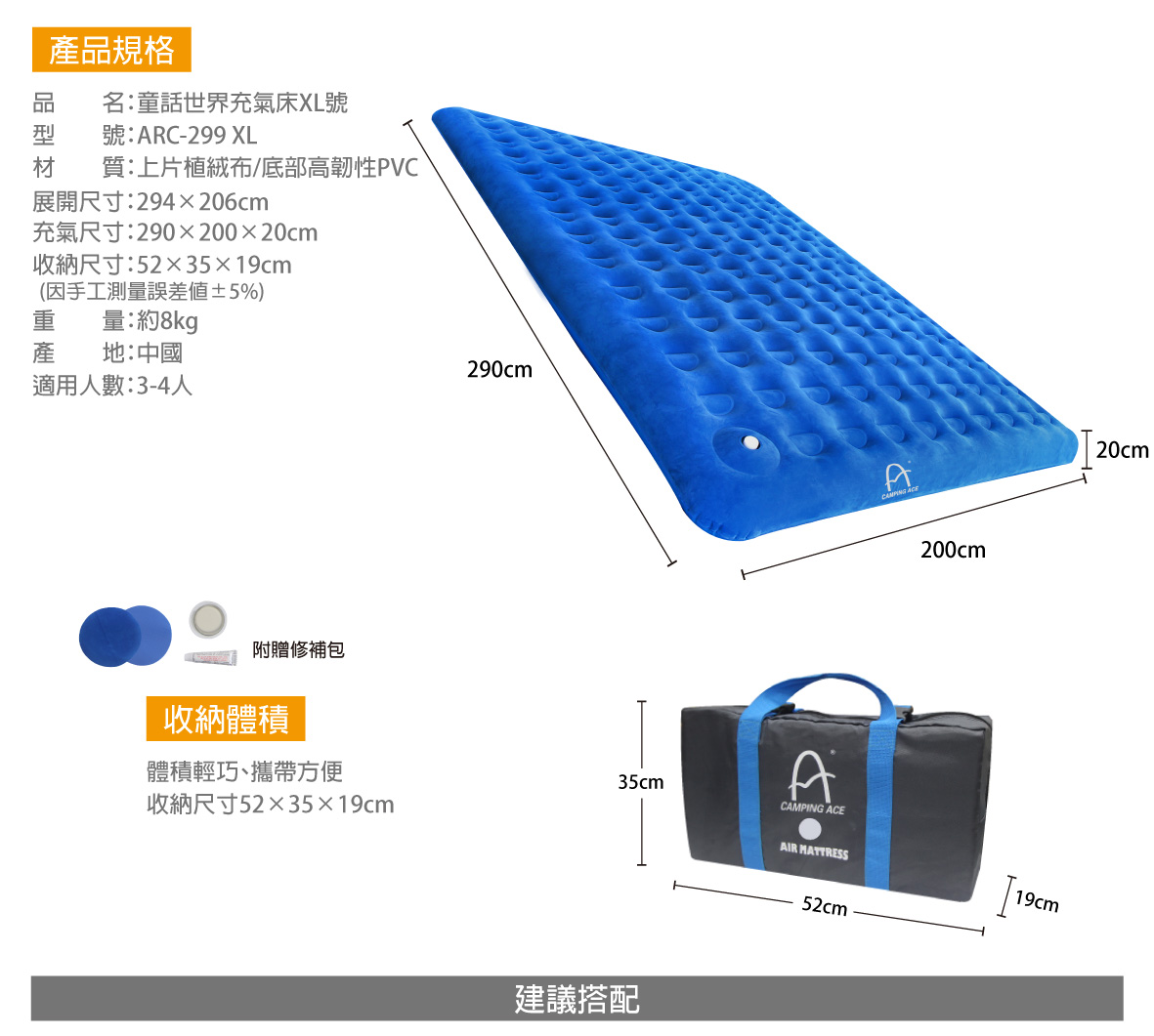【Camping Ace】 童話世界充氣床 XL號