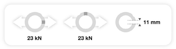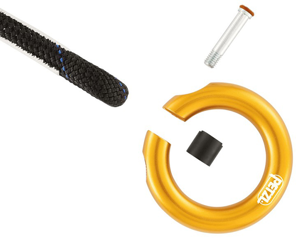 The RING OPEN gated ring is designed for the semi-permanent connection of equipment. Its round shape ensures optimal functioning in all directions. It has a wide opening that allows installation of ropes with sewn terminations.