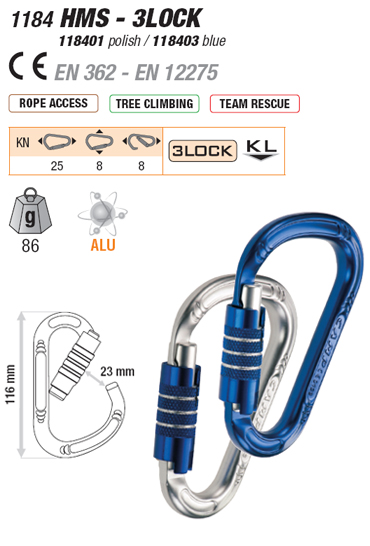 Triple action auto-locking HMS carabiner requires three actions to open the gate making it safer than standard 2Lock carabiners, which require two actions to open. This is the best choice when using an auto-locking carabiner to belay.