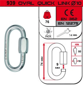 | 0939 | OVAL QUICK LINK STAINLESS 8 mm | 76 | 2.7 | 50 | 10 | 9 | 74 | 39 | Stainless steel | Q | Q | • |
