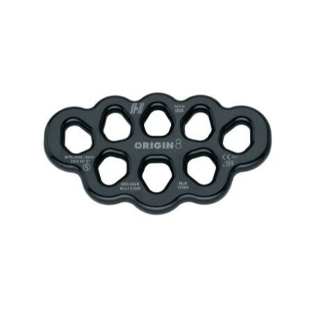Origin 8 分力盤的八個連接點可幫助您架設最複雜的吊掛情境。其較大的連接孔設計便於大多數鉤環能夠輕鬆自由地通過以及轉動。