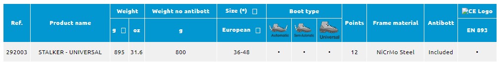 The Stalker crampon provides a precise fit on modern mountaineering boots and technical performance that only a true 12-point crampon can deliver. It is an excellent choice for safe travel in the mountains. Traditional chromoly steel construction is proven to stand the test of time and the universal binding with thermoplastic harnesses wrap around the boots and are secured by strong polyester straps. Dynamic anti-balling plates prevent snow build up