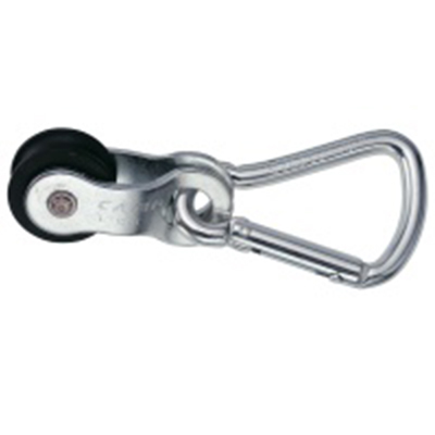 An inexpensive pulley with a nylon wheel and zinc-plated steel side plates. A great basic accessory pulley for occasional hauling and fixing.