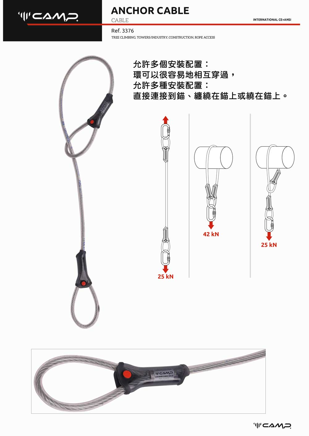 由鋼絲繩 (d.6 mm) 製成的錨固裝置具有高水平的抗切割性和耐用性。