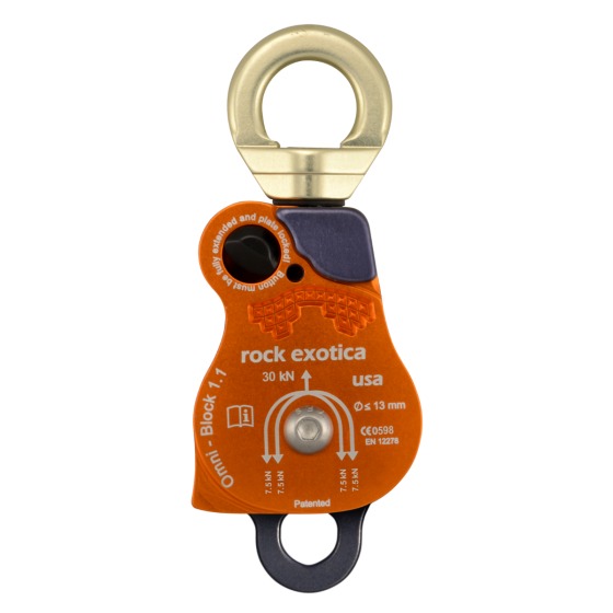 將萬向轉軸與滑輪結合在一起,傳統上需要透過一個鉤環連接,Omni不用,減少了鉤環的空間,更易於極限空間操作。重量更輕,攜帶更輕鬆。側開版的特殊設計,可以不拆卸滑輪即打開側板裝入繩索,傳統則需要將鉤環拆卸下來。