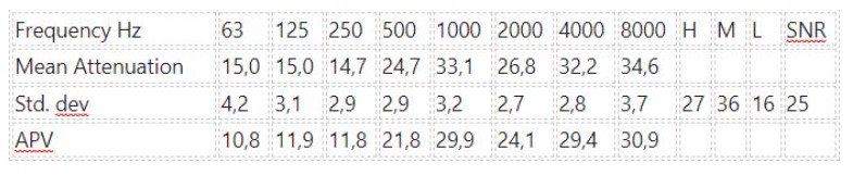 頻率衰減值:水平 28 dB - 中頻 21 dB - 低頻 13 dB。