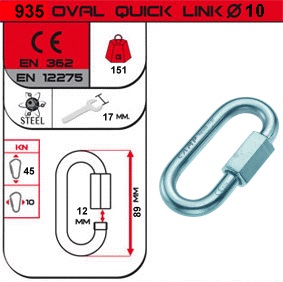 | 0935 | OVAL QUICK LINK STEEL 10 mm | 143 | 5.0 | 45 | 10 | 12 | 89 | 47 | Carbon steel | Q | Q | • |