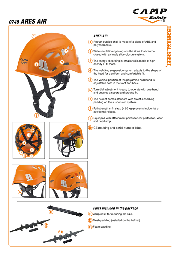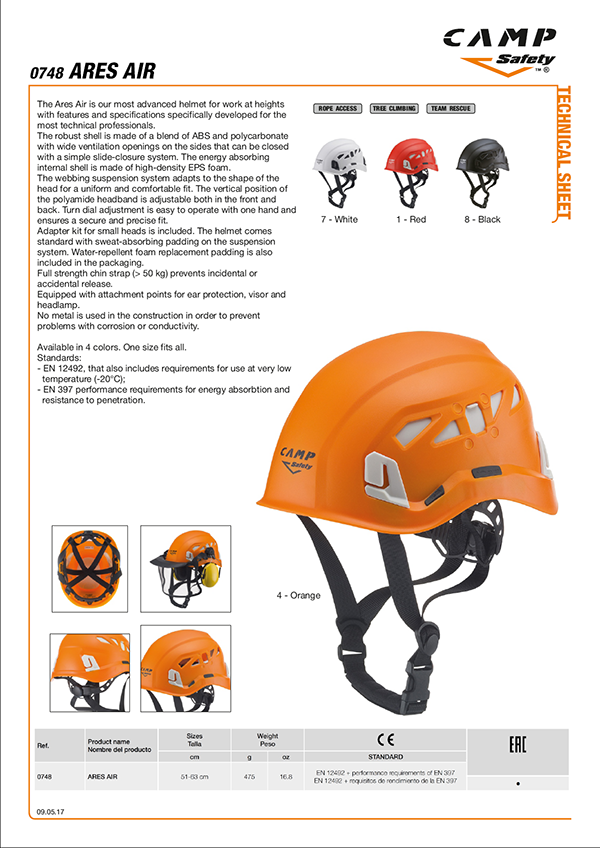 | 0748-8 | ARES AIR 54-62 cm - Black | 475 | 16.8 | EN 12492 + performance requirements of EN 397 | • |