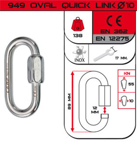 | 0949 | OVAL QUICK LINK STAINLESS 10 mm | 145 | 5.1 | 50 | 10 | 12 | 89 | 47 | Stainless steel | Q | Q | • |