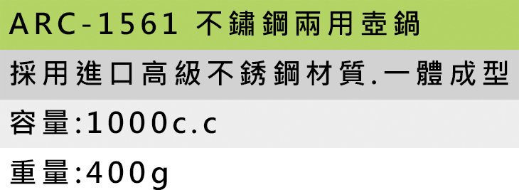 - 品名:ARC-1561 不鏽鋼兩用壺鍋