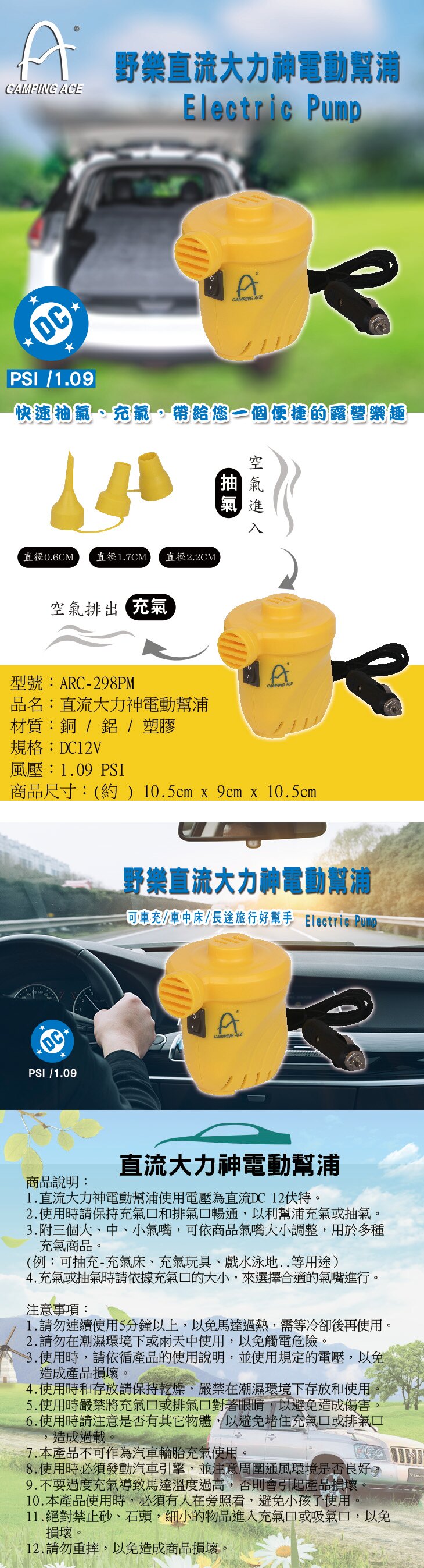 野樂直流大力神電動幫浦使用電壓為DC12V 。