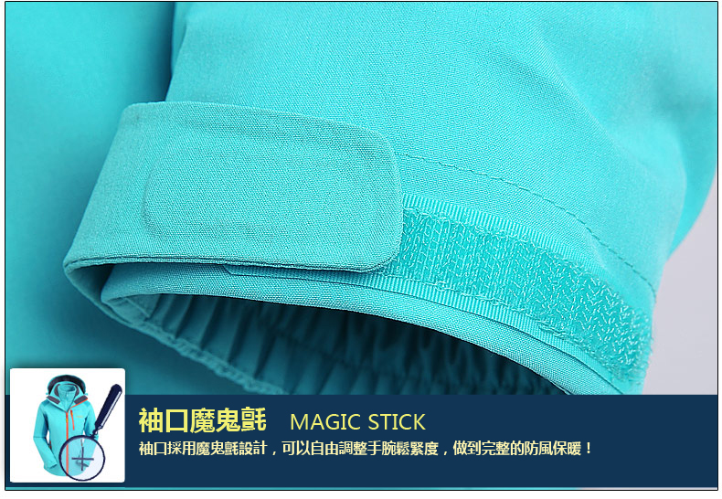 *袖口採用調節式魔鬼氈圓角設計