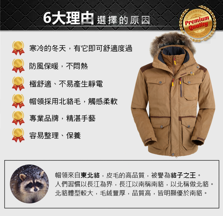 *帽簷採用保暖舒適的頂級貉毛,輕柔保暖