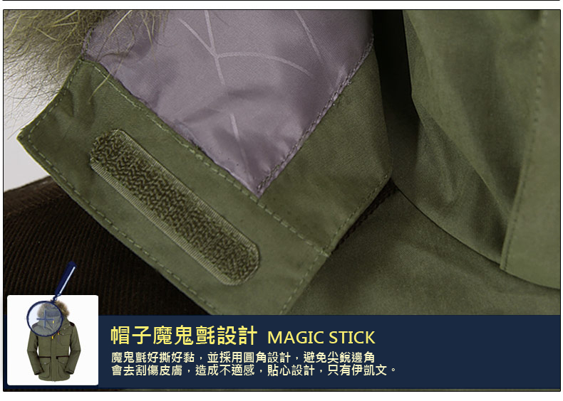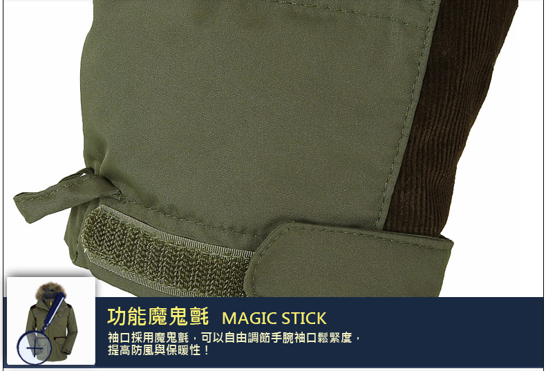 *袖口採用調節式魔鬼氈圓角設計