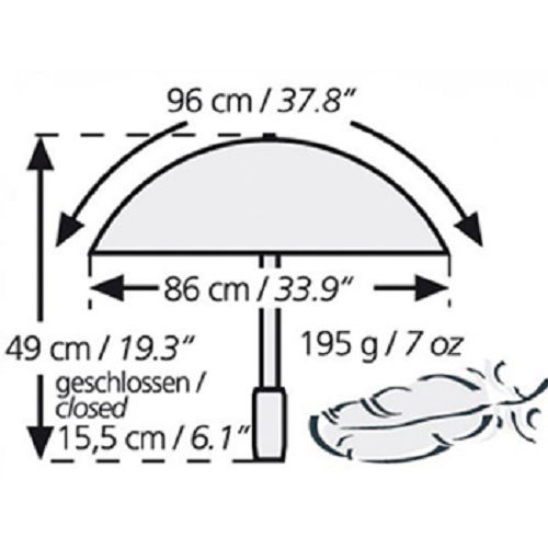 3.德國EuroSCHIRM雨傘之傘柱、傘骨較一般雨傘強韌堅固、不易斷,並非任何情況皆不會斷;傘布為車縫製作,在長時間或大雨使用下,依然有可能會滲水,此屬正常情況。