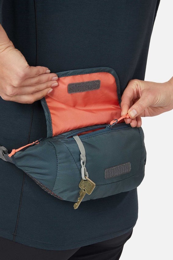這款背包具有堅固的結構和簡單的設計,可減輕重量,是您日常散步和旅行的理想日常腰包。它提供 1 公升的儲物空間,可容納您的必需品,配有一個拉鍊主隔層和兩個較小的拉鍊口袋,因此有足夠的空間存放您的零食、手機和鑰匙。織帶腰帶易於調整以確保牢固貼合,而柔軟的間隔網背板讓您在探索時保持舒適。