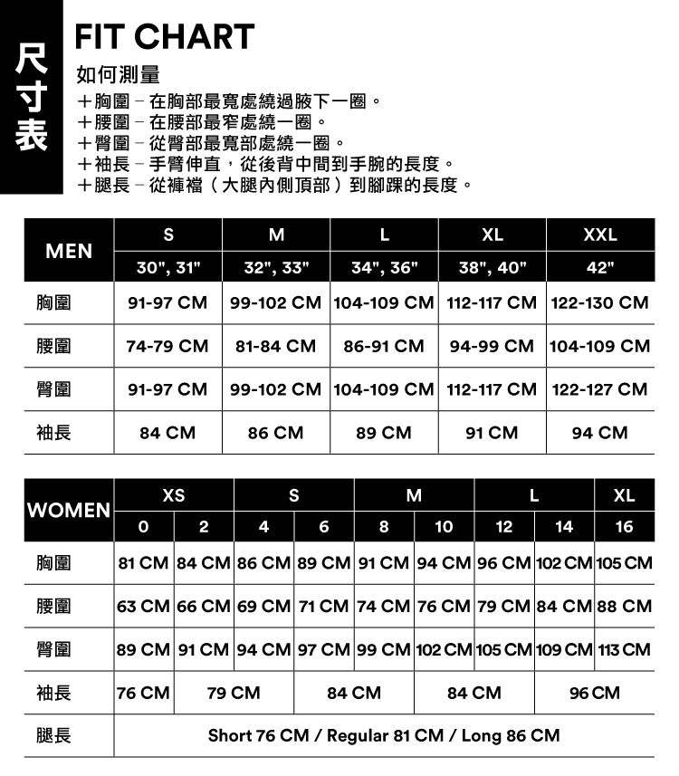 ※吸濕排汗服飾,清洗時請勿使用柔軟精與漂白劑。