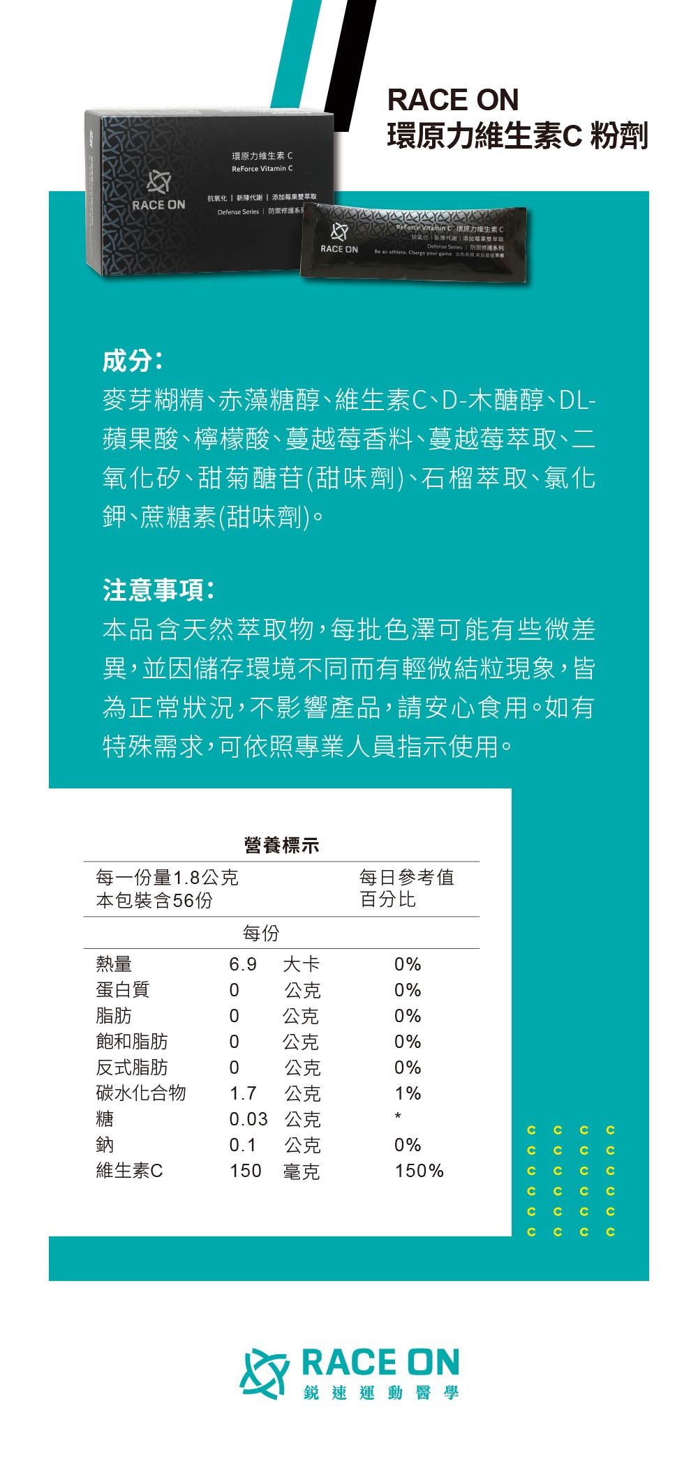 伊凱文戶外 RACE ON 環原力維生素C粉劑 大包裝14包/盒 發票