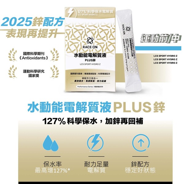 伊凱文戶外 RACE ON 水動能電解質液PLUS鋅 大包裝12包/盒 發票