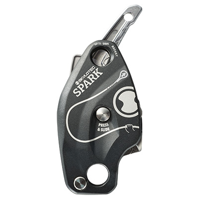 SPARK 下降器適用於高強度連續使用,不具備防恐慌功能(without anti-panic function),可快速、精確地進行繩降,符合人體工學,配有直觀的繩索引導裝置,100% 金屬材質,可防止繩索磨損