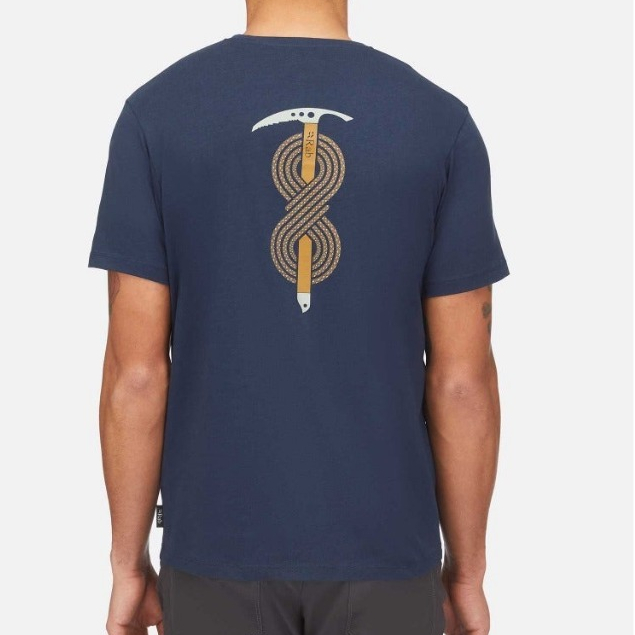 Made with super soft 100% organic cotton, this round neck tee has a casual fit and high comfort next-to-skin feel. It features an eye-catching ice axe and coiled rope print on the back.