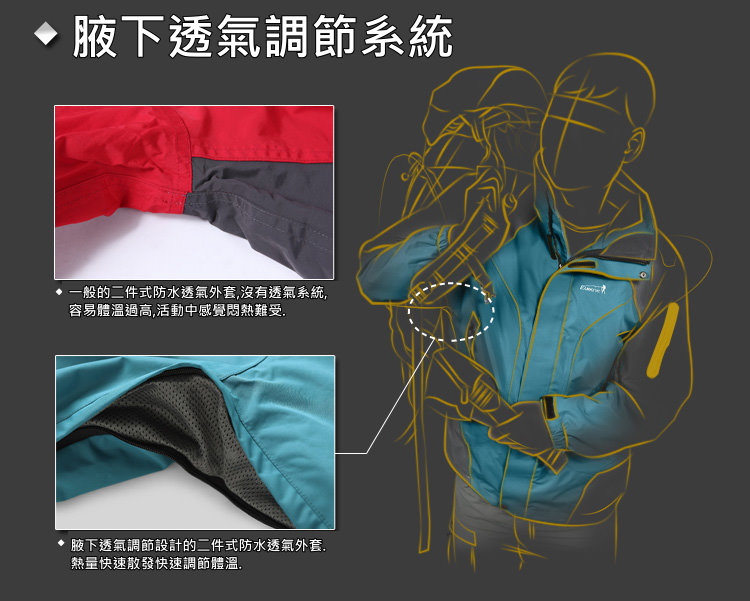 *腋下增設透氣拉鏈,能快速排除熱氣調節體溫