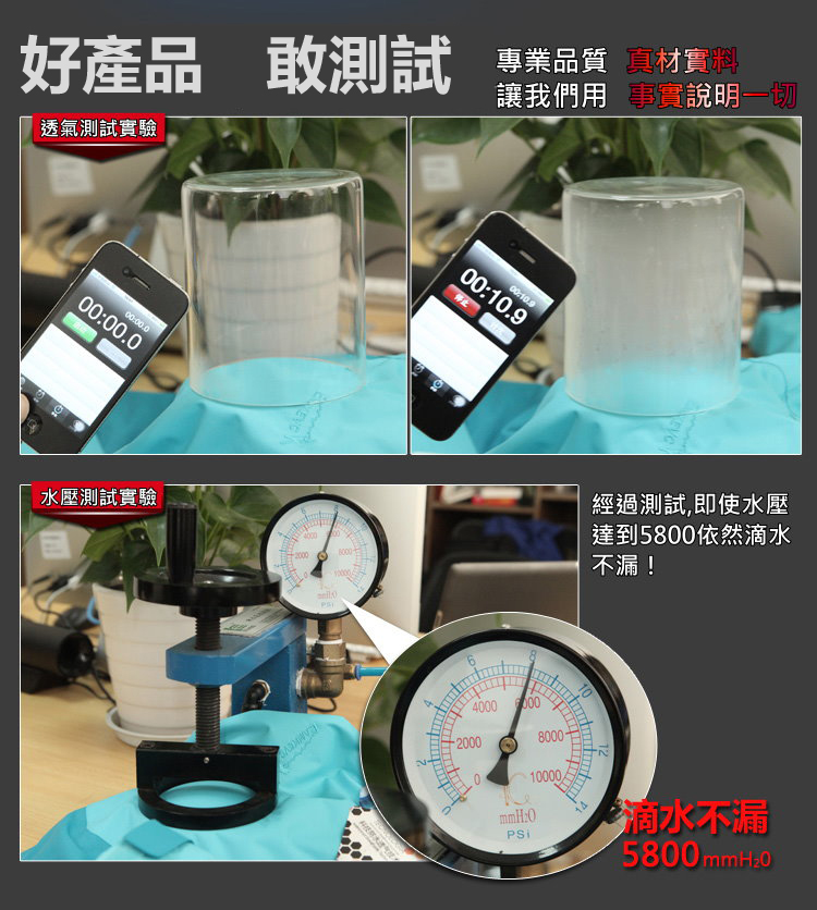 *防水係數高達10,000mm以上,100%完全防水