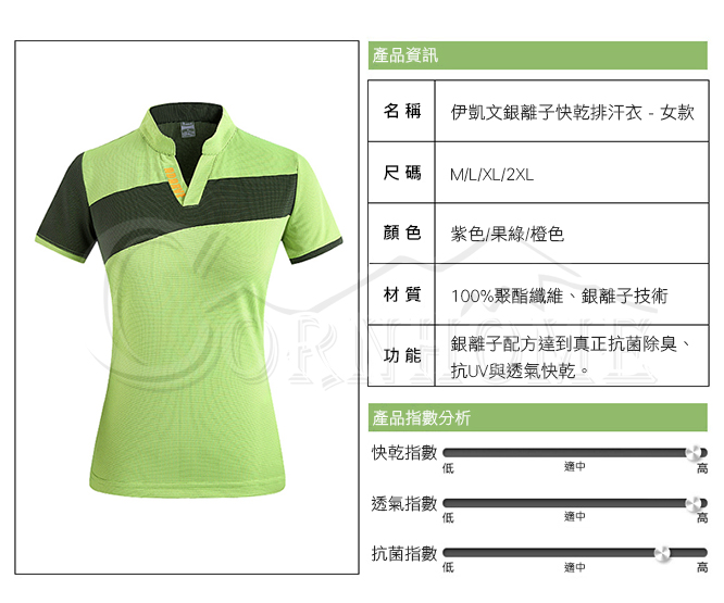 EAMKEVC 8143 銀離子快乾排汗衫 女款 果綠