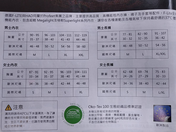 德國F-LITE與HAD同屬於Profeet集團之品牌,主要提供高品質,高機能性內衣褲、襪子及手套等配件。
