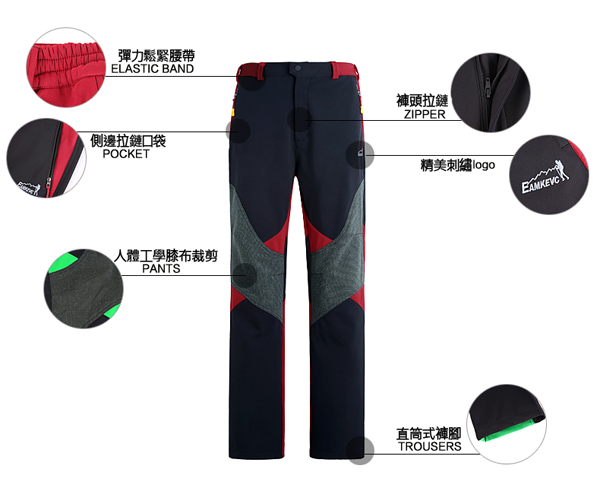 EAMKEVC 專業防風保暖軟殼褲 男款 紅色