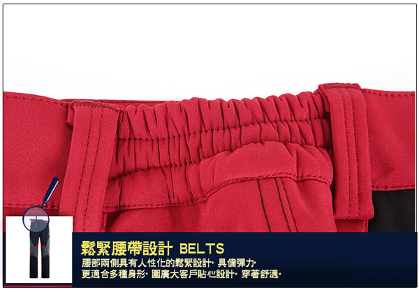 *腰部採用彈力鬆緊帶,可搭配腰帶使用