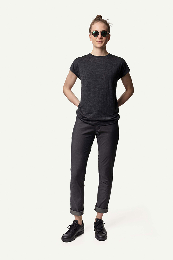 Way To Go Pants are made in Metropolis Stretch Twill, a light, stretchy and quick drying fabric made from 28% recycled polyester. It’s extremely durable as well as dirt- and abrasion resistant. The peached finish gives the garment a beautiful dull surface.