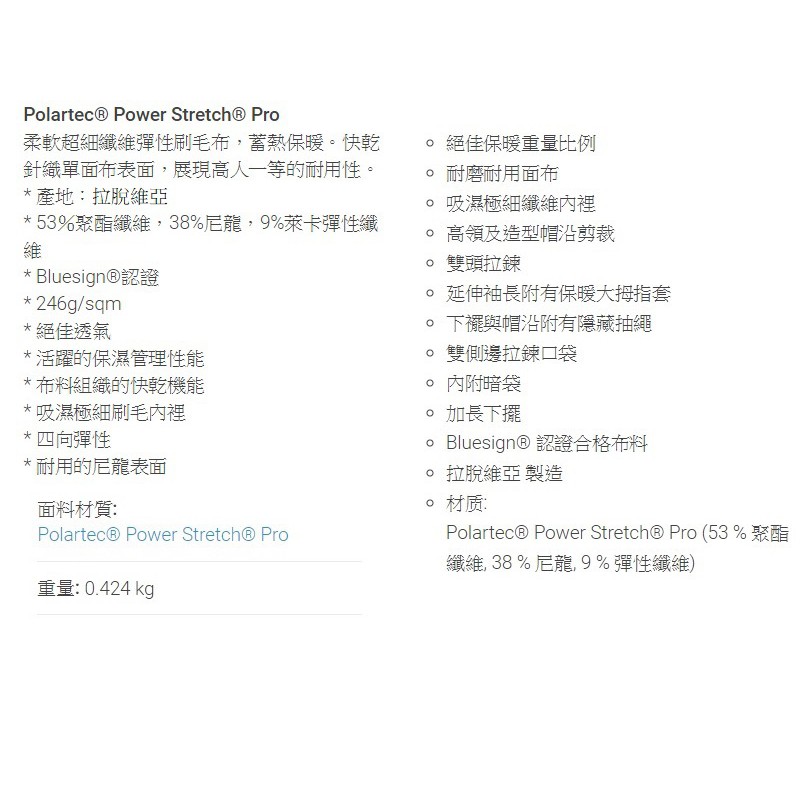 最原始的Power Houdi可以說是極簡主義的精髓,簡約設計下仍滿足所有需求 。有人說穿上它會“上癮”。完整的呈現一件科技抓絨該具備的吸濕,快乾質量。俐落的剪裁和簡約的設計使得Power Houdi具備多功能性,完美的提供了吸濕排汗,快乾的效果,提供一件多功能科技抓絨需具備的所有條件。 富彈性的材質使它貼身舒適。彈性回復力強且表面柔軟光滑,使其更容易配合層層穿搭。拉鍊拉至高領可維持脖子和下巴溫暖,雙層面料的大拇指套讓它更加耐磨。 主要布料Polartec® Power Stretch® Pro有耐磨的針織表布,內裡為極細柔軟抓絨,維持身體熱能,提供最大的活動自由並貼膚舒適。品味從細節看的見!